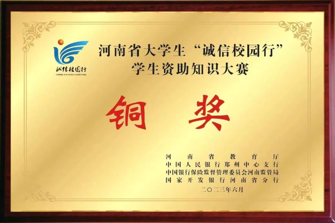 近日,由河南省教育厅、中国人民银行郑州中心支行、中国银行保险监督管理委员会河南监管局、国家开发银行河南省分行主办,南阳理工学院承办的河南省大学生“诚信校园行”学生资助知识大赛决赛在南阳理工学院举行。全省共有156支高校代表队参加,分七个分赛区进行初赛和复赛,最终36所高校代表队进入此次总决赛,yl23455永利官网代表队顺利晋级本次总决赛并喜获铜奖。