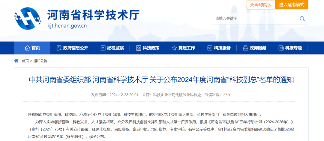 12月23日,中共河南省委组织部、河南省科学技术厅联合下发《关于公布2024年度河南省“科技副总”名单的通知》,yl23455永利官网李绍鹏教授、陈燕霞教授成功入选2024年度河南省“科技副总”。
